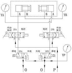 ①、旋轉(zhuǎn)電磁閥1上的手動旋鈕(順時針),壓力氣體P經(jīng)過電磁閥1從工作腔A供出,實現(xiàn)手動制動;制動完畢后逆時針旋回旋鈕,排出制動腔氣體。