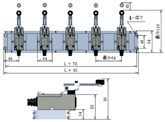 3)、開關的觸桿長度可調(diào),調(diào)節(jié)范圍0~45mm。