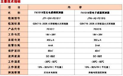 FA1018型光電感煙探測器、FA1016型感溫探測器可配接AFN80、AFN100、FS5050等火災(zāi)報警控制器。